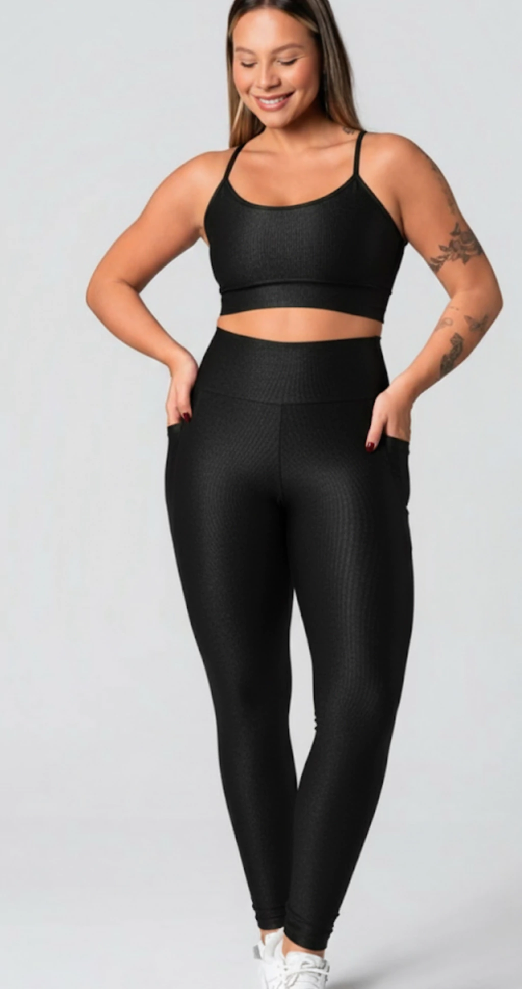 Conjunto Canelado Preto – Sofisticação e Conforto em Cada Detalhe